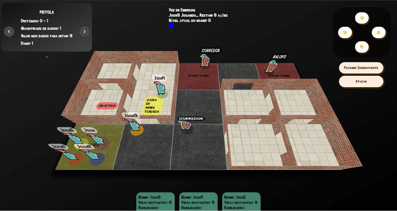 Developed as the final project of college, I implemented a multiplayer online virtual board game, inspired by the physical game Zombicide 2nd Edition. The application has a series of features, such as: moving players, collecting and using items, rolling dice, and killing zombies.